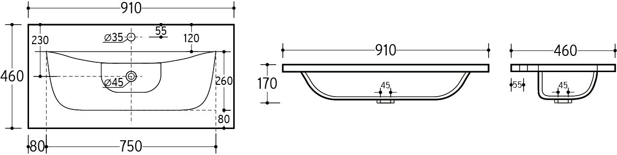SKY 90-8099 90-es Kerámia Mosdó:Szélesség: 91 cm Magasság: 17 cm Mélység: 46 cm