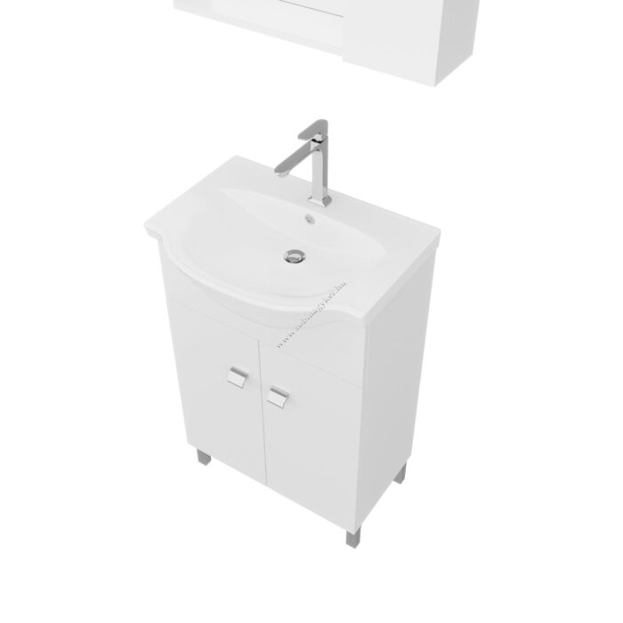 Fürdőszobabútor 55 cm kerámia mosdóval (2 ajtós) + Tükör 58 cm, oldalszekrénnyel és LED megvilágítással.