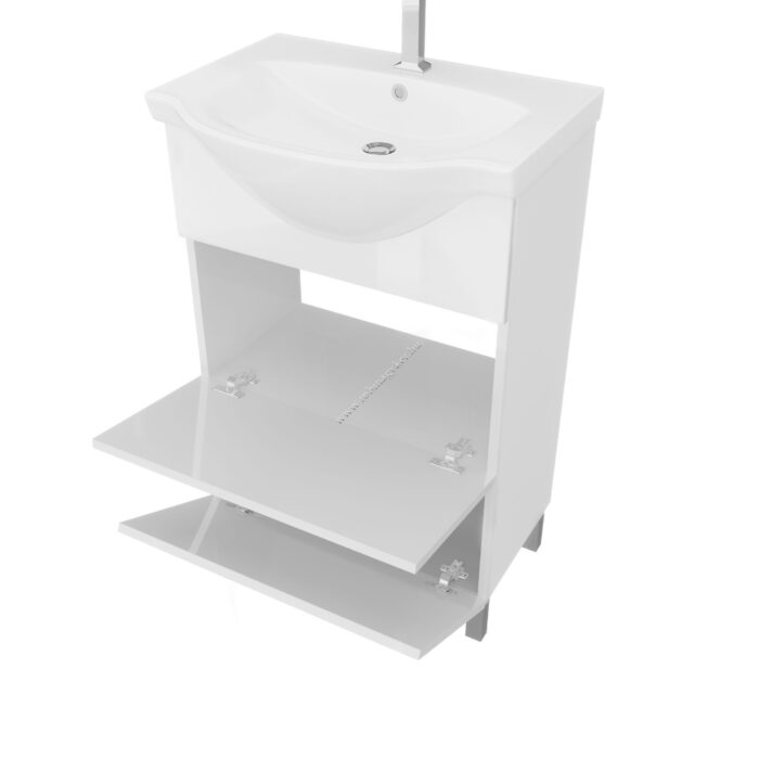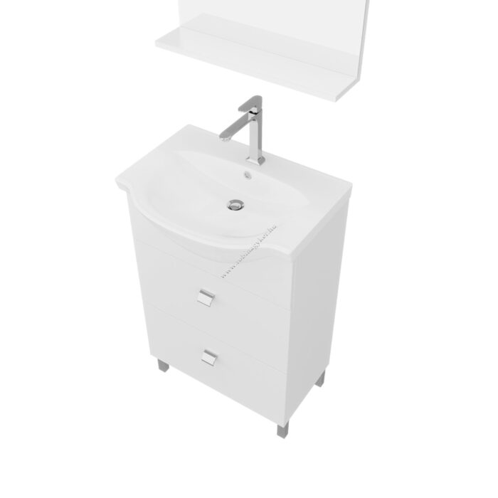 Fürdőszobabútor 55 cm kerámia mosdóval (2 lenyiló ajtós)+Polcos tükör LED spot világátással 52 cm |