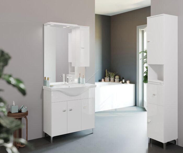 Klasszikus fürdőszoba bútor. Tartós, megfizethető árú, és kompatibilis bármilyen környezettel.
