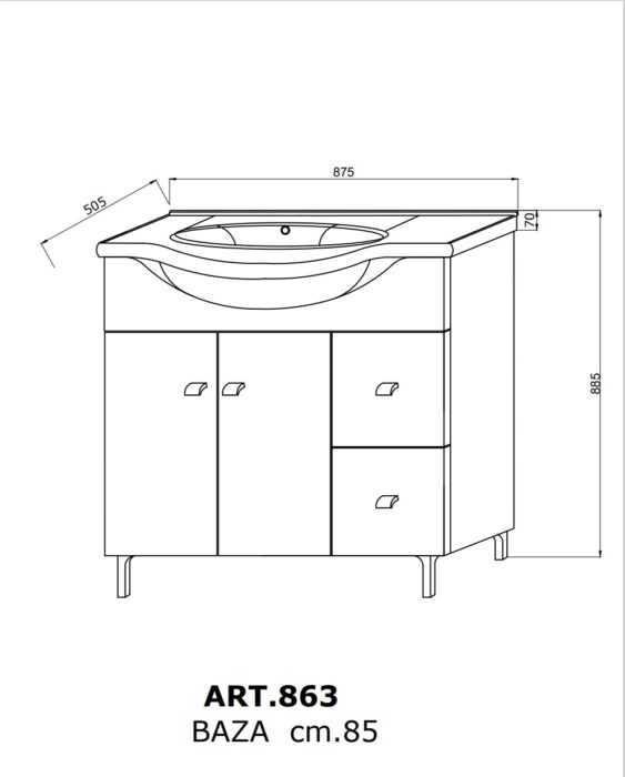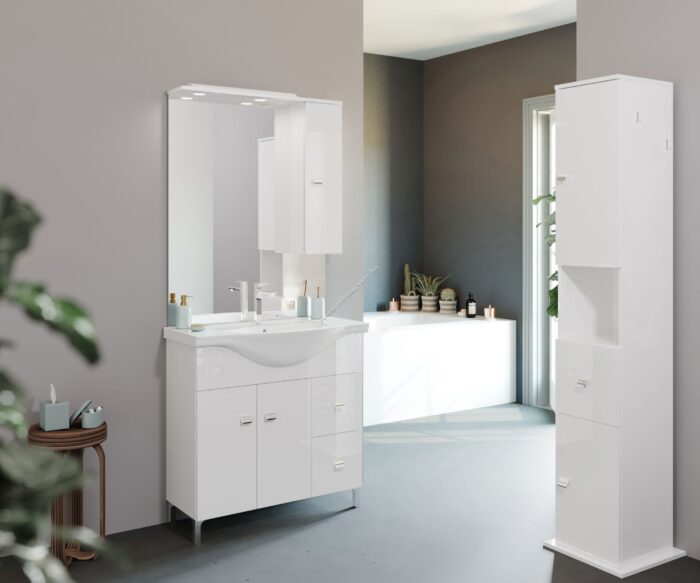 Klasszikus fürdőszoba bútor. Tartós, megfizethető árú, és kompatibilis bármilyen környezettel.