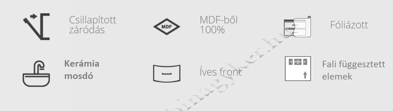 Az egyedi gyártói tervezésű Soles fürdőszobabútor kollekció új koncepciót nyújt ívelt és modern stílusával, így bármely fürdőszoba méltó középpontja lehet.Három méretváltozatban kapható, 60,80 és 100 cm szélességben.Ezen fürdőszobabútor vonalvezetése követi a mosdókagyló ívét, az elemek között harmonikus egységet hozva létre, melyet a Soft Close technológia(csendes-lágy-csapódás mentes) még hangsúlyosabbá tesz.