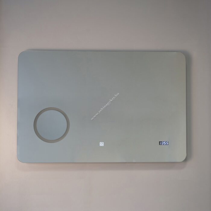 SPR206 Szögletes integrált LED tükör 100 x 70 cm (érintőgombos, nagyitós, óra és hőmérő)