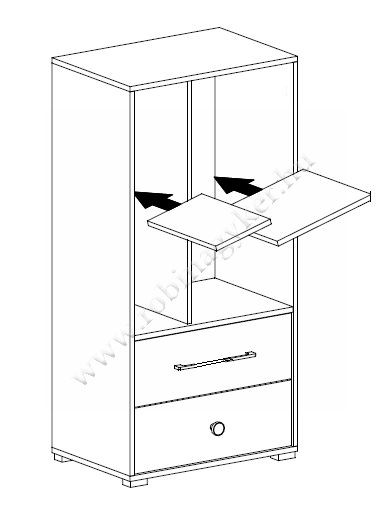 A modern STEP kollekció könnyedén illeszkedik bármely gyerek- vagy ifjúsági szobába. A front részek változatos színválasztéka meghitt és optimista hangulatot teremthet a helyiségben. A kollekció elemei hatalmas tárhelyet biztosítanak, így nagyon egyszerűen tárolhatja a ruhákat vagy a kiegészítőket az Ön kívánsága szerint. A STEP kollekció több komponenst tartalmaz, így könnyedén berendezheti gyermekszobáját kívánságai szerint. A bútorok minőségi laminált faforgács bútorlapból készülnek, amely ellenáll a mechanikai sérüléseknek.16mm vastag laminált faforgácslapból készült elemek esetén az ABS élzárás is a hosszú élettartamot biztosítja generációról generációra. Főbb jellemzők: a görgős teljesen kihúzható fióksínek és design fogantyúk.