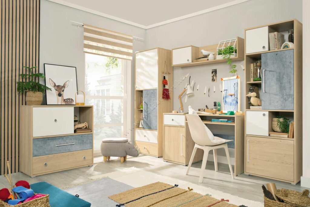A modern STEP kollekció könnyedén illeszkedik bármely gyerek- vagy ifjúsági szobába. A front részek változatos színválasztéka meghitt és optimista hangulatot teremthet a helyiségben. A kollekció elemei hatalmas tárhelyet biztosítanak, így nagyon egyszerűen tárolhatja a ruhákat vagy a kiegészítőket az Ön kívánsága szerint. A STEP kollekció több komponenst tartalmaz, így könnyedén berendezheti gyermekszobáját kívánságai szerint. A bútorok minőségi laminált faforgács bútorlapból készülnek, amely ellenáll a mechanikai sérüléseknek.16mm vastag laminált faforgácslapból készült elemek esetén az ABS élzárás is a hosszú élettartamot biztosítja generációról generációra. Főbb jellemzők: a görgős teljesen kihúzható fióksínek és design fogantyúk.