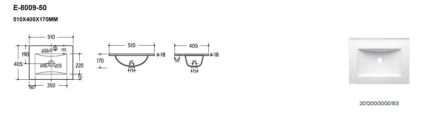Süllyesztett mosdó, beépíthető mosdó UM-2050RB DANCE 50-SM – Bútorba építhető mosdó egymedencés 50 cm