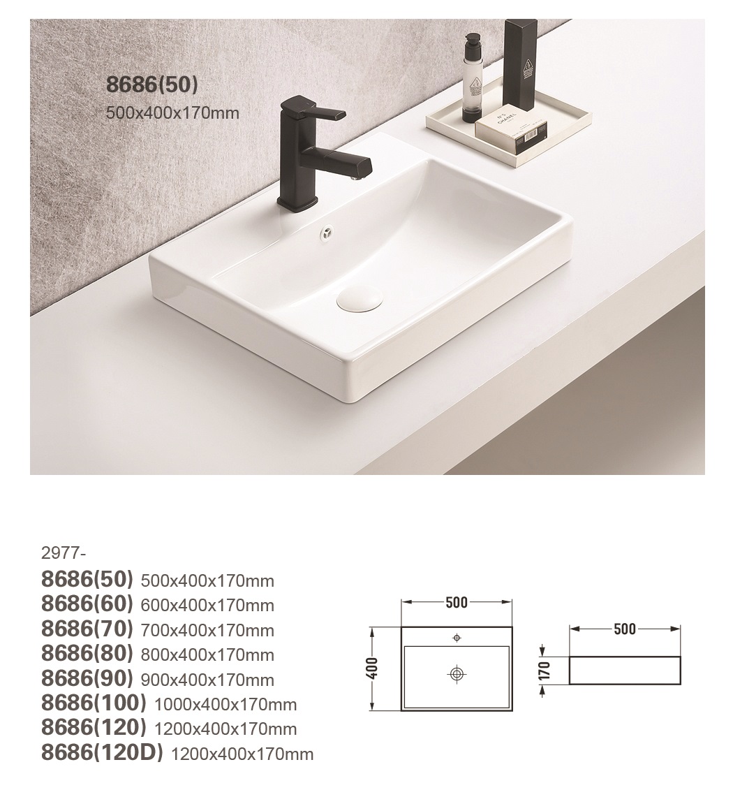 Süllyesztett mosdó, beépíthető mosdó UN-RITA-GW-50-SM – Bútorba építhető mosdó egymedencés 50 cm