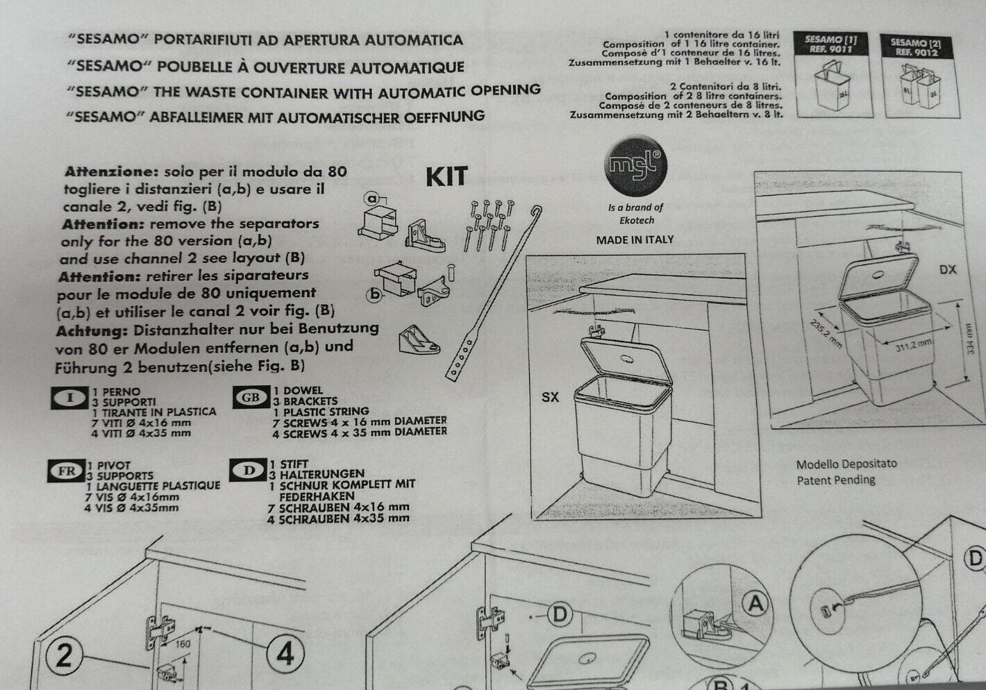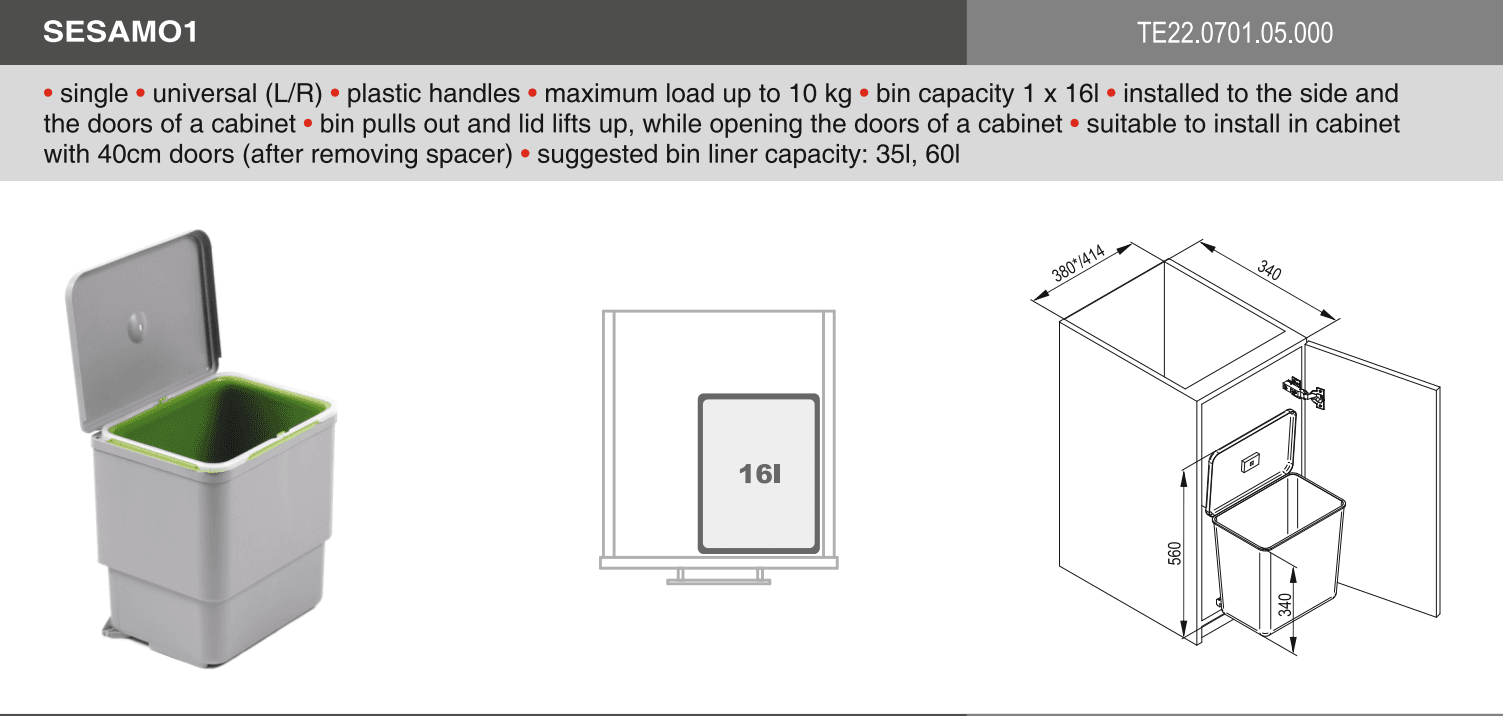 Szemetes SESAMO1, 45 cm-es szekrénybe tehető (D1D45)