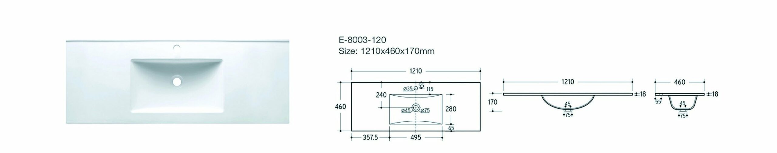 UM-CFP120 LAVA 120-as Kerámia Mosdó:Szélesség: 121cm Magasság:17 cm Mélység:46 cm