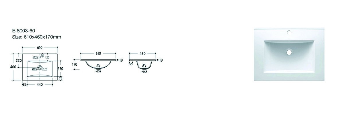 UM-CFP60 LAVA 60-as Kerámia Mosdó:Szélesség: 61cm Magasság:17 cm Mélység:46 cm