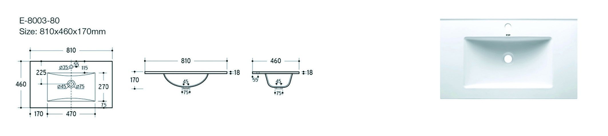 UM-CFP80 LAVA 80-as Kerámia Mosdó:Szélesség: 81cm Magasság:17 cm Mélység:46 cm