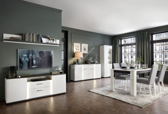 – A finoman sötétített árnyalatú üvegezés és a készletben található függőleges LED-es világítás fokozza a bútorok modern megjelenését