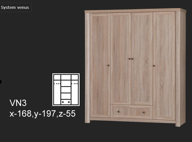 VENUS SYSTEM VN3 ELEM(1 fiókos 4 ajtós gardrób szekrény)-Bútor*