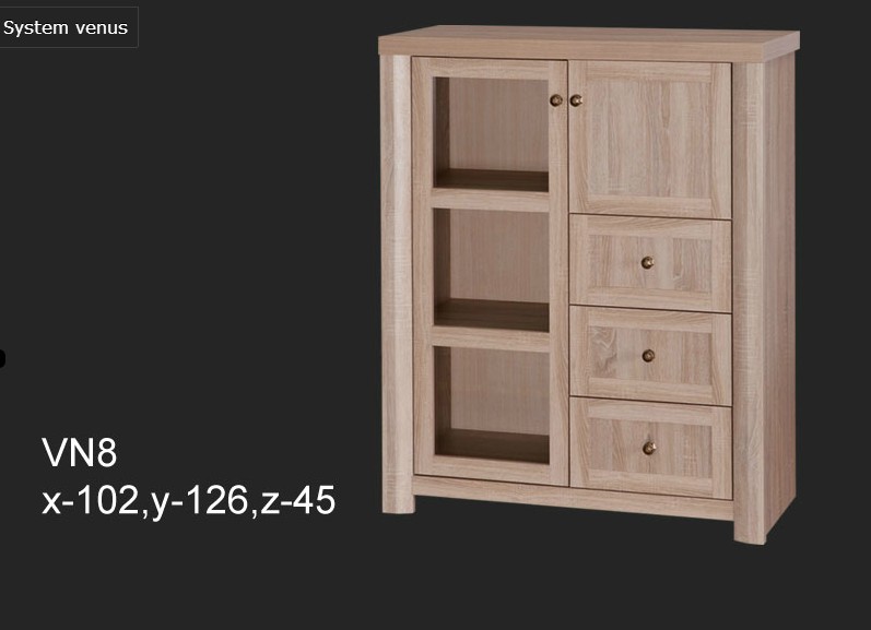 VENUS SYSTEM VN8 ELEM(3 fiókos 2 ajtós witrines komód)-Bútor*