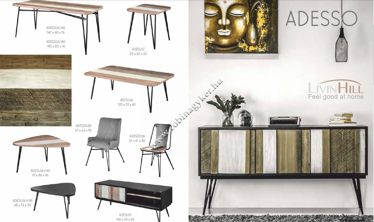 Az Adesso kollekció – ezek a legmagasabb minõségû bútorok, eredeti fafrontokkal és fém lábakkal. A fekete testek tökéletesen illenek a szürke és a bézs árnyalatú frontokhoz. Az egyszerű formák és árnyalatok, mint például a lap felületén stilizált felület, félig matt lakkokkal és lakkozott fa szerkezettel, valamint aszimmetrikus domború homlokokkal, kopásokkal és erős rátétekkel.Minden részletet a lehető legnagyobb gonddal hozták létre, a diszkrét megjelenés mellett a tolóajtók könnyen használhatóak. Az Adesso kollekciót könnyedre tervezték. Az elegancia modern stílusban tökéletesen működik a nappaliban, a hálószobában vagy a előterekben is.