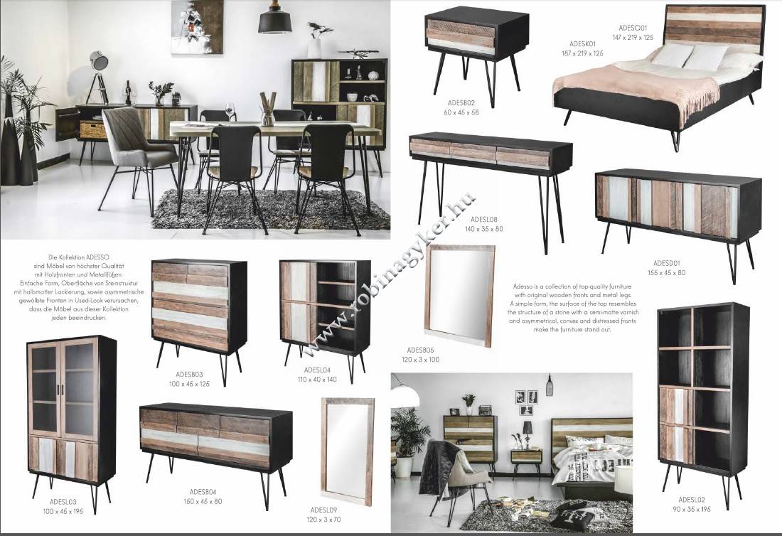 Az Adesso kollekció – ezek a legmagasabb minõségû bútorok, eredeti fafrontokkal és fém lábakkal. A fekete testek tökéletesen illenek a szürke és a bézs árnyalatú frontokhoz. Az egyszerű formák és árnyalatok, mint például a lap felületén stilizált felület, félig matt lakkokkal és lakkozott fa szerkezettel, valamint aszimmetrikus domború homlokokkal, kopásokkal és erős rátétekkel.Minden részletet a lehető legnagyobb gonddal hozták létre, a diszkrét megjelenés mellett a tolóajtók könnyen használhatóak. Az Adesso kollekciót könnyedre tervezték. Az elegancia modern stílusban tökéletesen működik a nappaliban, a hálószobában vagy a előterekben is.