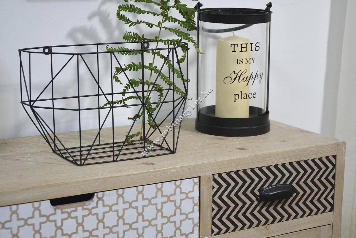 Anyaga: Fa, furnír és fém fogantyúk-lábak kombinációja.