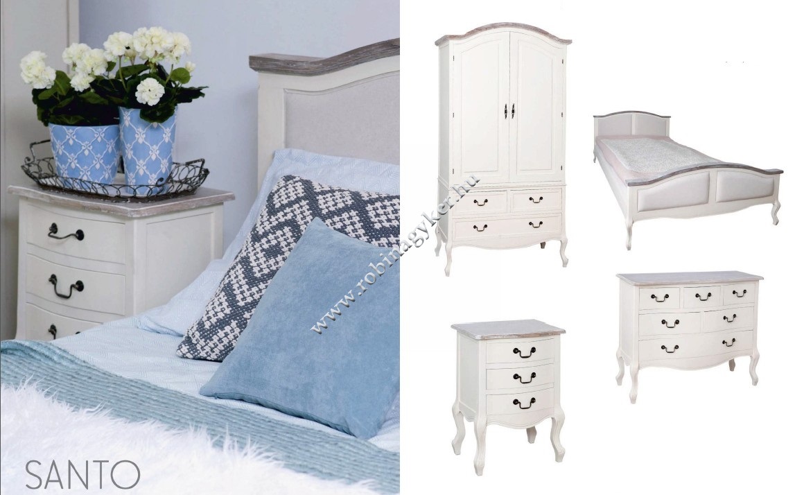A Santo hálószobabútor elemeinek megjelenésében a hamisítatlan Provance-i életérzés köszön vissza.
