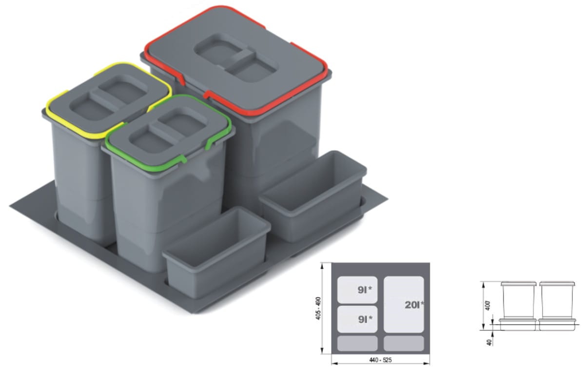 WE14.1828.05.049 *PRACTIKO-60 H400 szelektív kuka 2x9L + 1×20