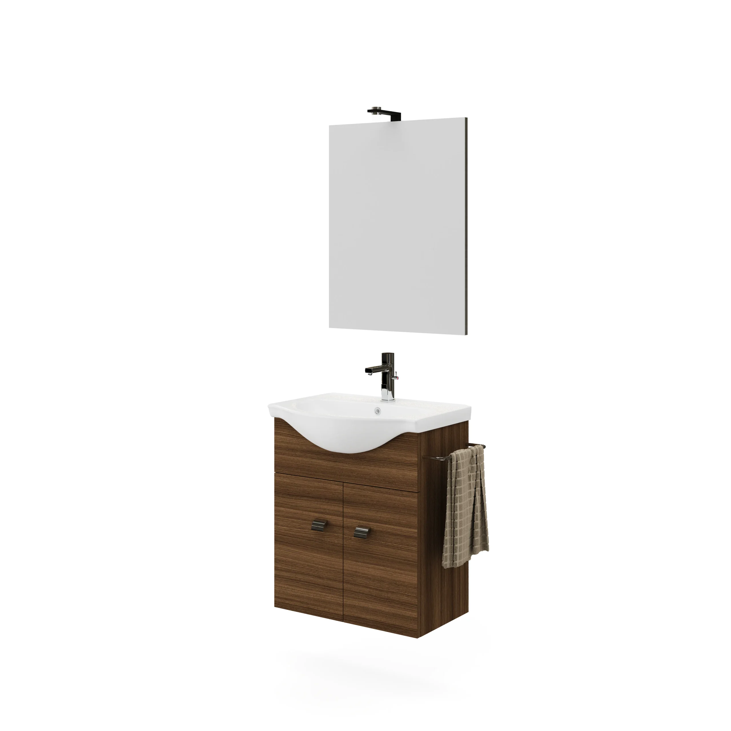 | ZAFFIRO | 4787+213/EL+LAMP906029 | 55 cm | Rovere Moka | Mosdószekrény+mosdó+tükör+lámpa | Zaffiro 2 Ajtós Fürdőszobabútor 55 cm kerámia mosdóval, lap tükör Led világítással |