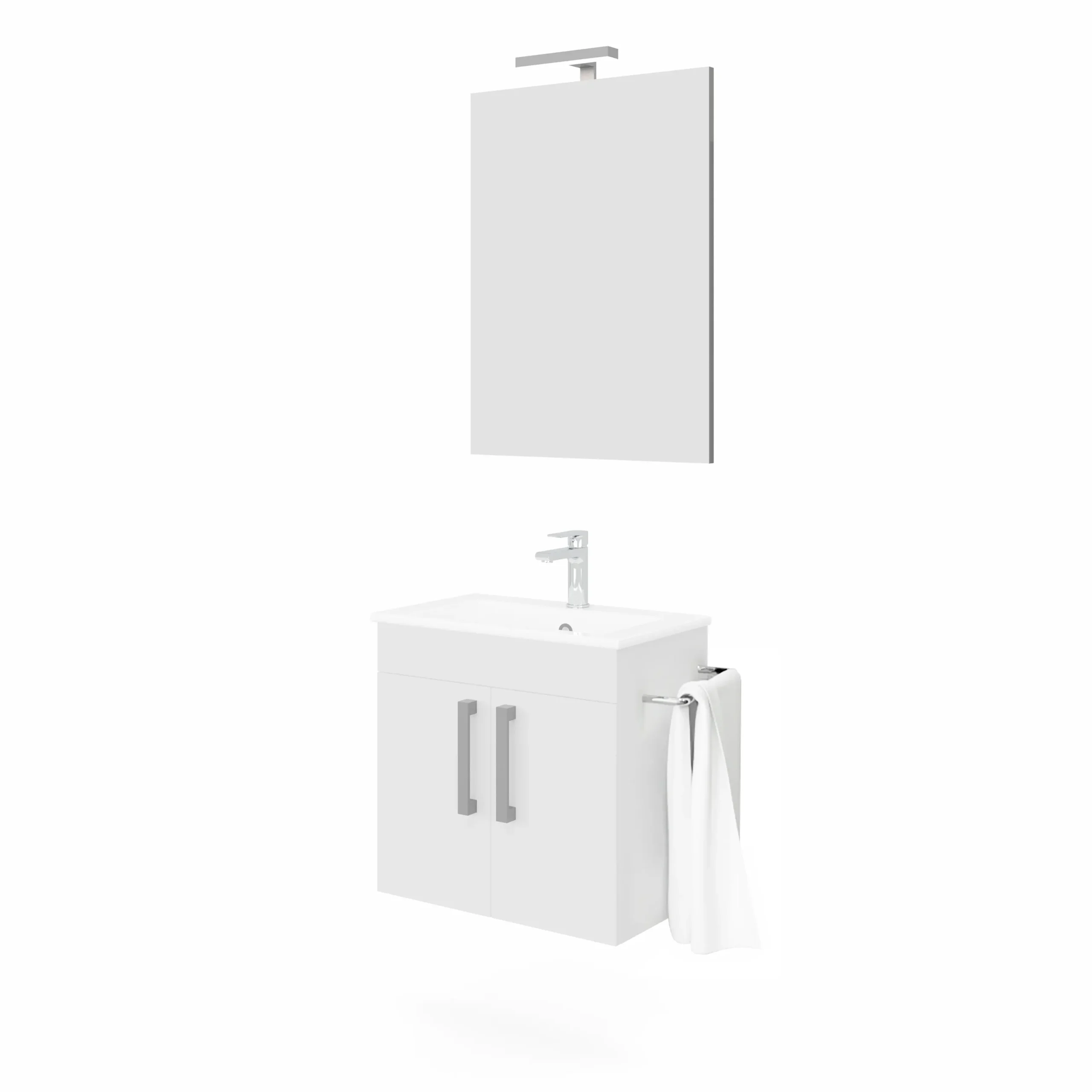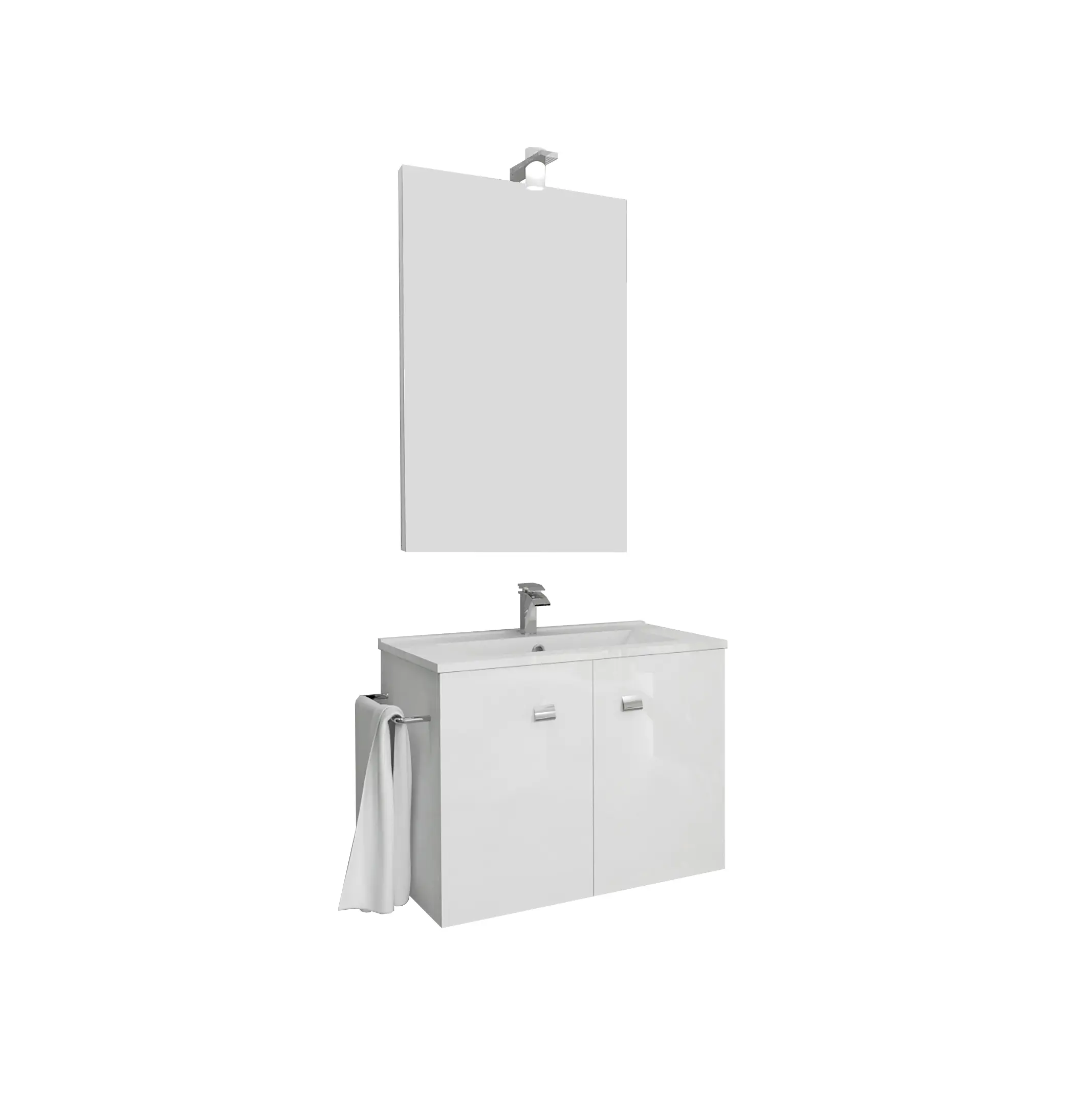 | ZAFFIRO | COMP.CARLA | 60 cm | Fehér matt korpusz / Fehér magasfényű front | Mosdószekrény+mosdó+tükör+lámpa | Zaffiro 2 Ajtós Fürdőszobabútor 55 cm kerámia mosdóval, lap tükör Led világítással |