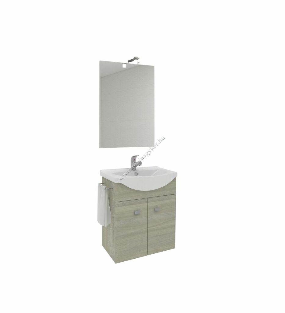 | 4287+213/EL+LAMP906029 | ZAFFIRO | 2 Ajtós Fürdőszobabútor 55 cm kerámia mosdóval, lap tükör Led világítással rovere fumo |